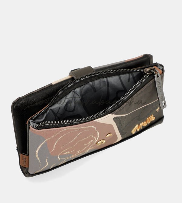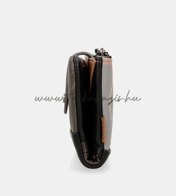 A másik oldalon kialakított cipzáras rekesz aprópénz tárolására alkalmas.