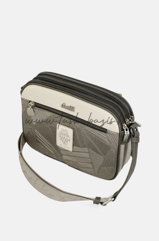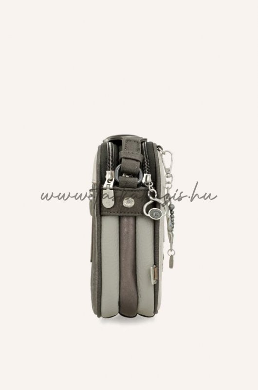 Ez a mutatós kisméretű táska három különálló cipzáras rekesszel rendelkezik.